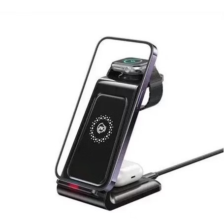 شارژر 3در1 ویکام از بروز ترین محصولات در زمینه پایه نگهدارنده و شارژر های بی سیم میباشد.این محصول دارای سه قسمت برای شارژ تلفن همراه،هندزفری های بی سیم و ساعت های هوشمند است. فناوری شارژ ایمن بکار رفته در این محصول وجه تمایز این محصول با رقبا است که با قطع اتوماتیک جریان ، از بین بردن نوسانات و تنظیم یکنواخت جریان از آسیب به باتری جلو گیری کرده و باعث بازدهی طولانی مدت دستگاه های شما میباشد.شارژ همزمان چند دستگاه یکی از مهمترین ویژگی های بکاررفته میباشد شما می توانید بدون اتصال سیم و بطور یکجا گجت های خودرا با فناوری شارژ سریع در کمترین زمان ممکن شارژ کنید. جنس فوق العاده مستحکم و فناوری ساخت بالا ماندگاری شارژر را تضمین میکند تنظیم های جدا گانه توان برای هر گجت یکی از بهترین ویژگی های این محصول میباشد.