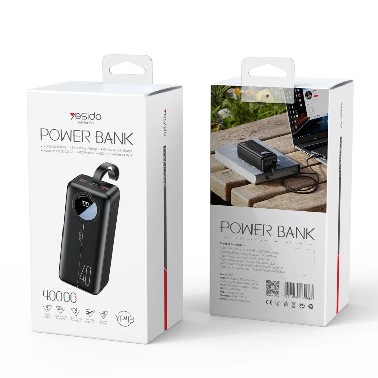 مشخصات فنى: ظرفیت باتری : ۴۰ هزار میلی آمپر پورت ورودی تایپسی : ۵V/۳A, ۹V/۲A, ۱۲V/۱.۵A ۱۸W پورت خروجی تایپسی : ۵V/۳A, ۹V/۲.۲A, ۱۲V/۱.۶۷A PD۲۰W پورت خروجی یو اس بی : ۹V/۲.۵A, ۵V/۳A, ۹V/۲A, ۱۲V/۱.۵A ۲۲.۵W