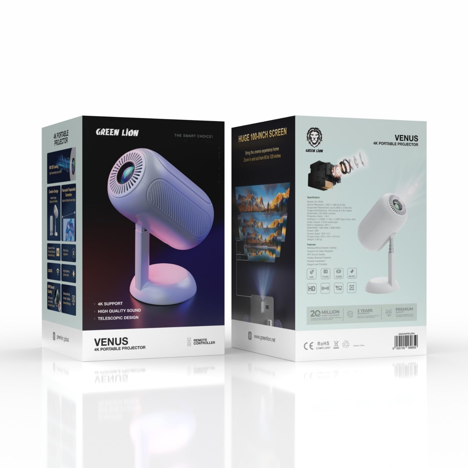 پروژکتور قابل حمل Green Venus4K Portable Projector بهترین انتخاب برای شمایی که می خواهید هنگام تماشای فیلم احساس کنید در سینما هستید.
