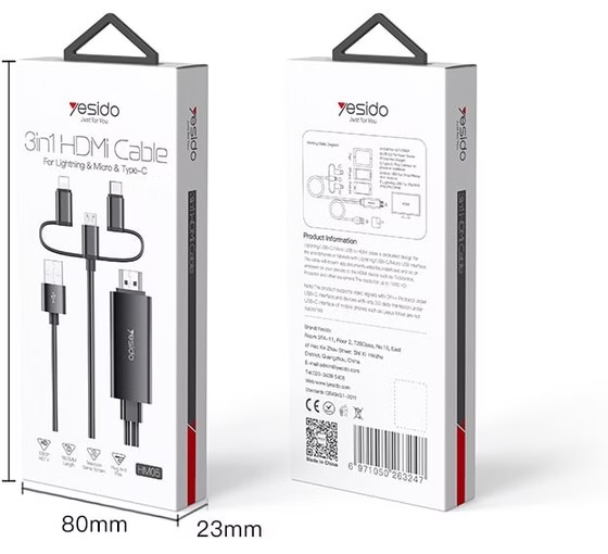 کابل 3 سر Lightning، تایپسی، میکرو به Hdmi یسیدو سری 4k مدل HM05 طول 1.8 متر